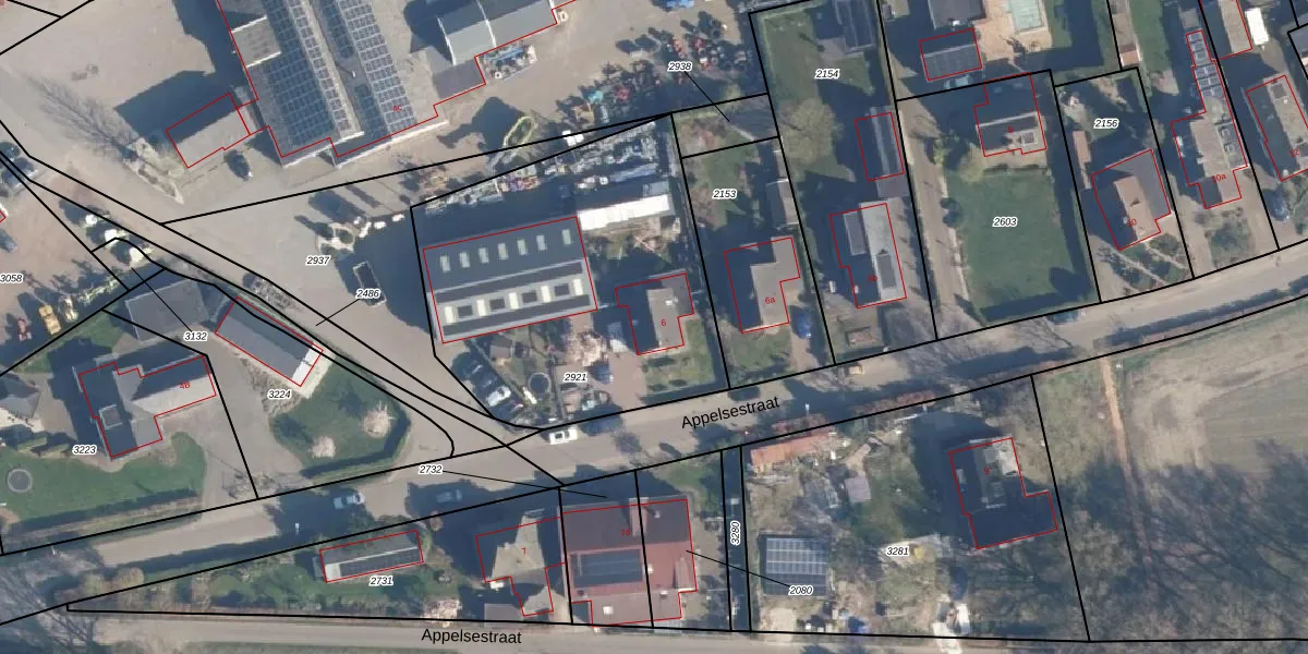 Het perceel waarop Appelsestraat 6 staat heeft een oppervlakte van 1630 m². Dit is een zeer groot perceel. De perceeloppervlakte wordt geregistreerd door het Kadaster. Gedetailleerde informatie over de maten van dit perceel kunt u vinden in het rapport Kadastrale kaart met maatvoering van Appelsestraat 6.