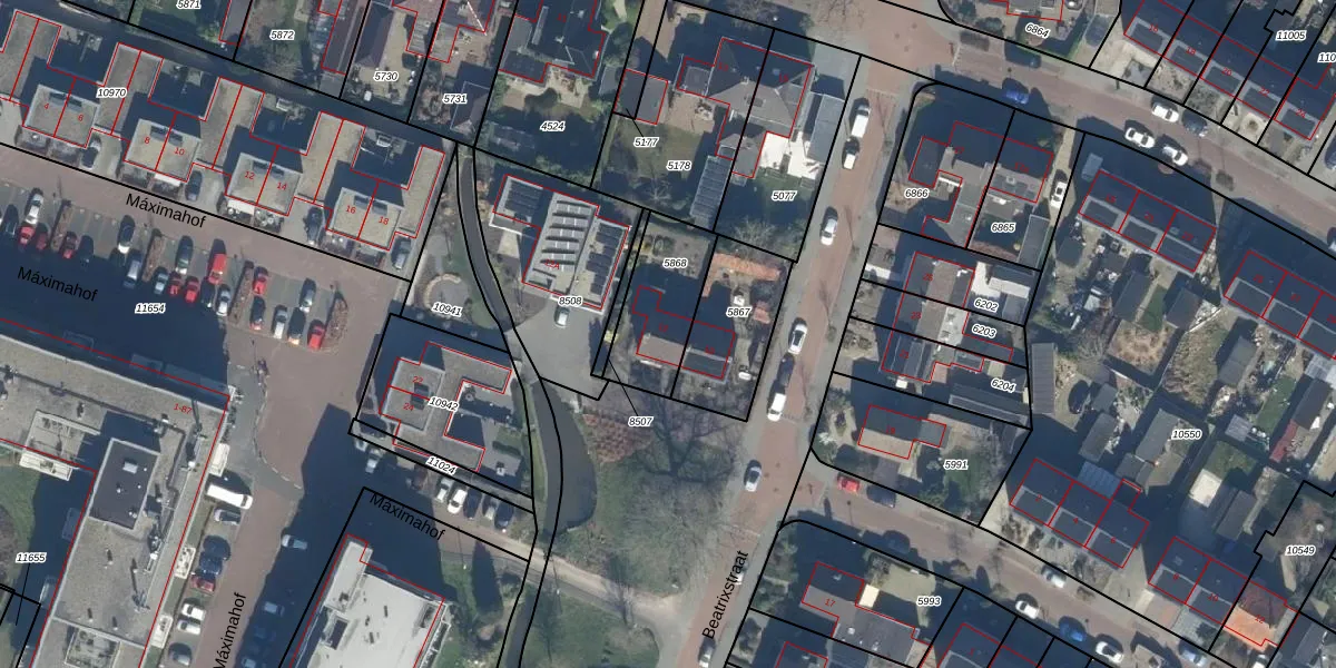 Het perceel waarop Beatrixstraat 12 staat heeft een oppervlakte van 265 m². Dit is een middelgroot perceel. De perceeloppervlakte wordt geregistreerd door het Kadaster. Gedetailleerde informatie over de maten van dit perceel kunt u vinden in het rapport Kadastrale kaart met maatvoering van Beatrixstraat 12.