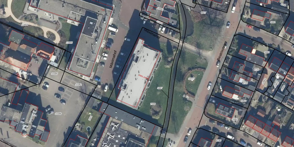 Het perceel waarop Beatrixstraat 2-003 staat heeft een oppervlakte van 1910 m². Dit is een zeer groot perceel. De perceeloppervlakte wordt geregistreerd door het Kadaster. Gedetailleerde informatie over de maten van dit perceel kunt u vinden in het rapport Kadastrale kaart met maatvoering van Beatrixstraat 2-003.