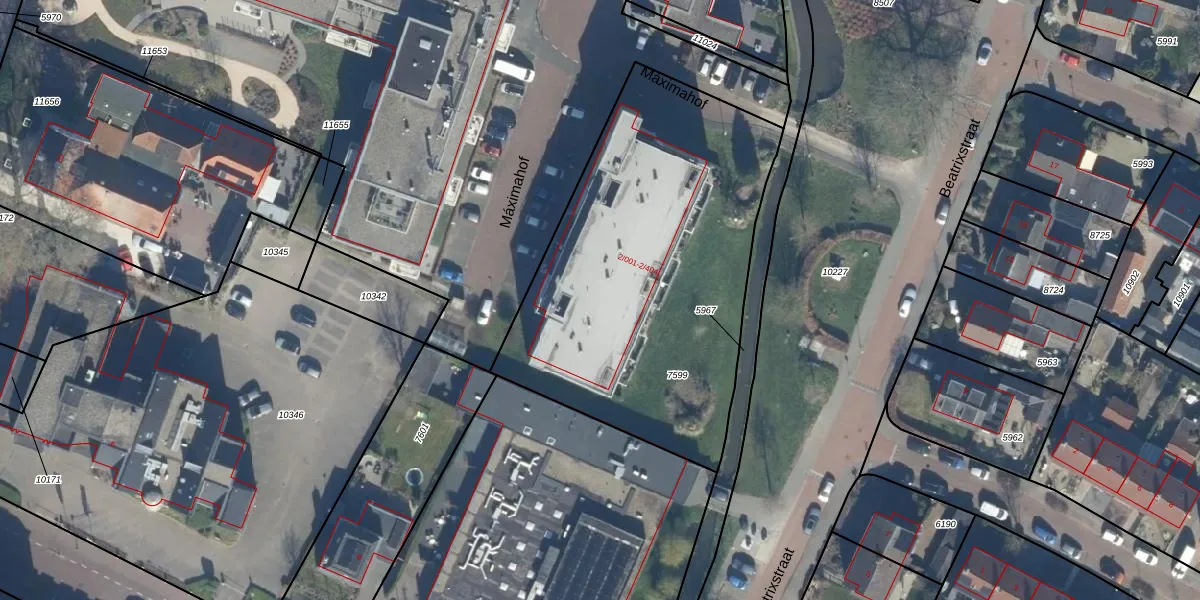 Het perceel waarop Beatrixstraat 2-205 staat heeft een oppervlakte van 1910 m². Dit is een zeer groot perceel. De perceeloppervlakte wordt geregistreerd door het Kadaster. Gedetailleerde informatie over de maten van dit perceel kunt u vinden in het rapport Kadastrale kaart met maatvoering van Beatrixstraat 2-205.