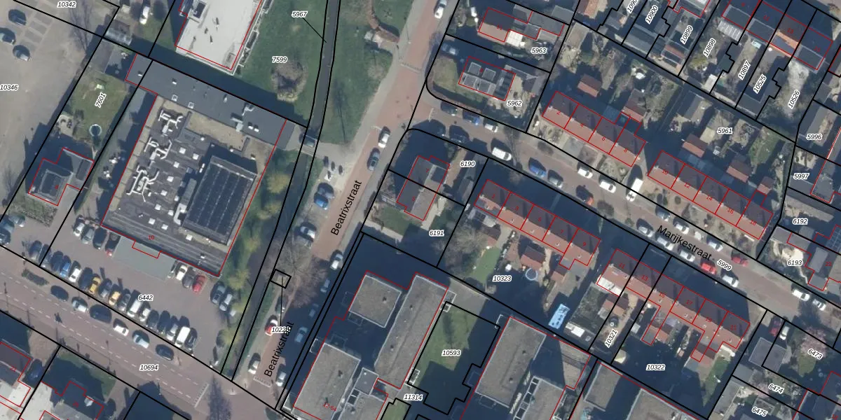 Het perceel waarop Beatrixstraat 5 staat heeft een oppervlakte van 322 m². Dit is een groot perceel. De perceeloppervlakte wordt geregistreerd door het Kadaster. Gedetailleerde informatie over de maten van dit perceel kunt u vinden in het rapport Kadastrale kaart met maatvoering van Beatrixstraat 5.