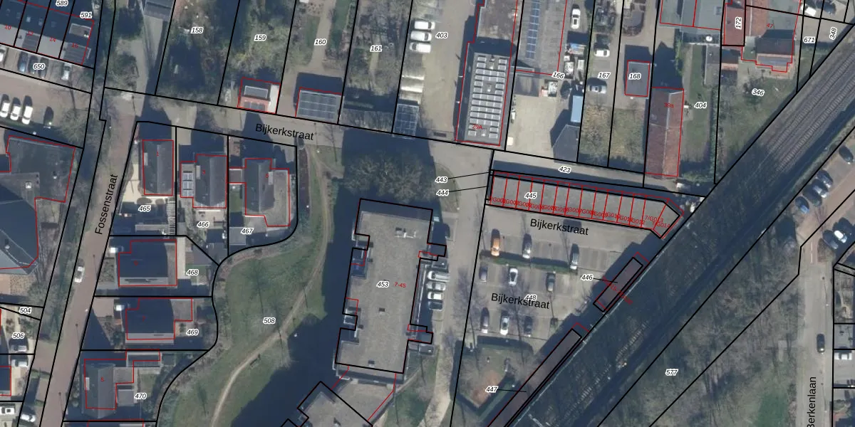 Het perceel waarop Bijkerkstraat 13 staat heeft een oppervlakte van 649 m². Dit is een groot perceel. De perceeloppervlakte wordt geregistreerd door het Kadaster. Gedetailleerde informatie over de maten van dit perceel kunt u vinden in het rapport Kadastrale kaart met maatvoering van Bijkerkstraat 13.
