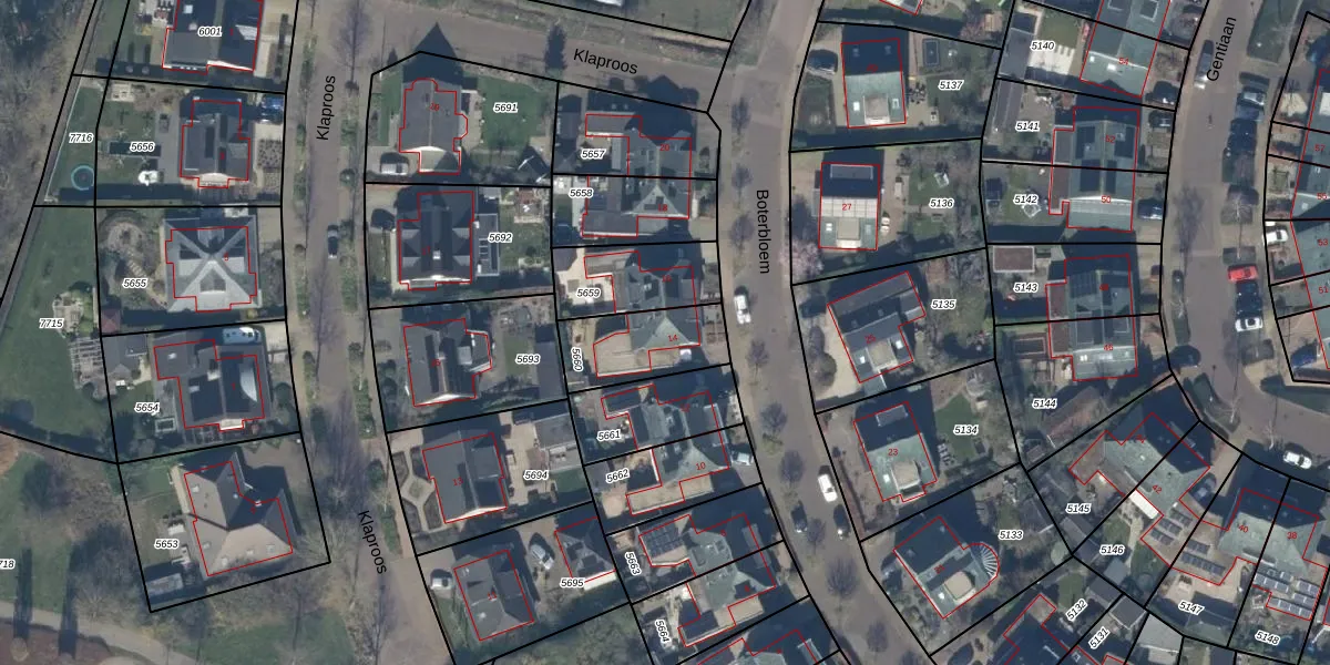 Het perceel waarop Boterbloem 14 staat heeft een oppervlakte van 254 m². Dit is een middelgroot perceel. De perceeloppervlakte wordt geregistreerd door het Kadaster. Gedetailleerde informatie over de maten van dit perceel kunt u vinden in het rapport Kadastrale kaart met maatvoering van Boterbloem 14.
