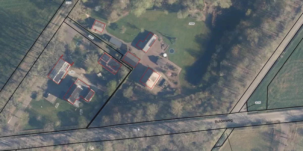 Het perceel waarop Bulderweg 14 staat heeft een oppervlakte van 1,2 ha. Dit is een zeer groot perceel. De perceeloppervlakte wordt geregistreerd door het Kadaster. Gedetailleerde informatie over de maten van dit perceel kunt u vinden in het rapport Kadastrale kaart met maatvoering van Bulderweg 14.