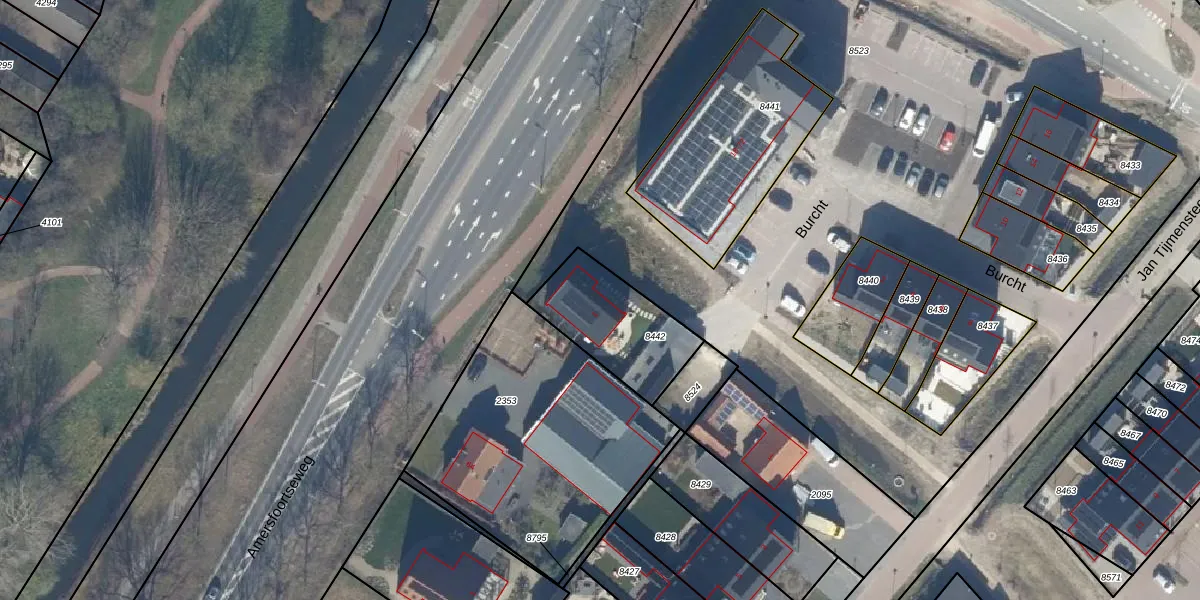 Het perceel waarop Burcht 1 staat heeft een oppervlakte van 355 m². Dit is een groot perceel. De perceeloppervlakte wordt geregistreerd door het Kadaster. Gedetailleerde informatie over de maten van dit perceel kunt u vinden in het rapport Kadastrale kaart met maatvoering van Burcht 1.