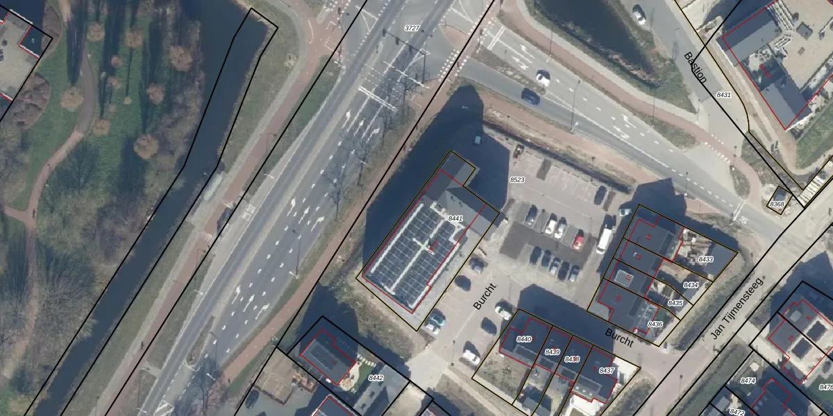 Het perceel waarop Burcht 18 staat heeft een oppervlakte van 681 m². Dit is een groot perceel. De perceeloppervlakte wordt geregistreerd door het Kadaster. Gedetailleerde informatie over de maten van dit perceel kunt u vinden in het rapport Kadastrale kaart met maatvoering van Burcht 18.