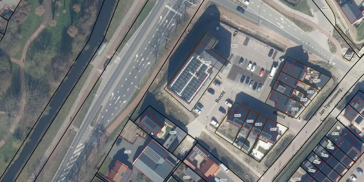 Het perceel waarop Burcht 66 staat heeft een oppervlakte van 681 m². Dit is een groot perceel. De perceeloppervlakte wordt geregistreerd door het Kadaster. Gedetailleerde informatie over de maten van dit perceel kunt u vinden in het rapport Kadastrale kaart met maatvoering van Burcht 66.