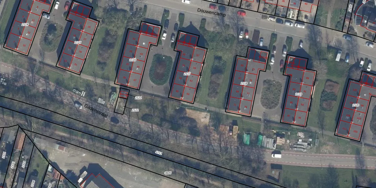 Douwencamp 63 is gelegen op kadastraal perceel NKK01C2117. Deze kadastrale aanduiding is uniek en wordt gebruikt door het Kadaster om eigendomsrechten en andere zakelijke rechten vast te leggen. Het perceel maakt onderdeel uit van de kadastrale gemeente Nijkerk Gelderland.