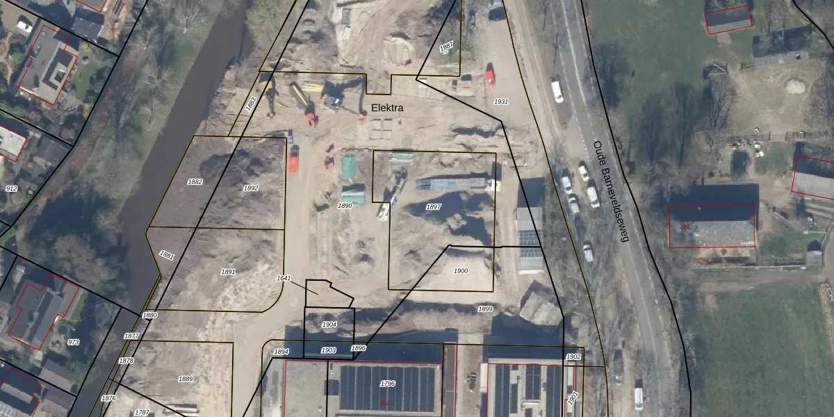 Het perceel waarop Elektra 57 staat heeft een oppervlakte van 725 m². Dit is een groot perceel. De perceeloppervlakte wordt geregistreerd door het Kadaster. Gedetailleerde informatie over de maten van dit perceel kunt u vinden in het rapport Kadastrale kaart met maatvoering van Elektra 57.