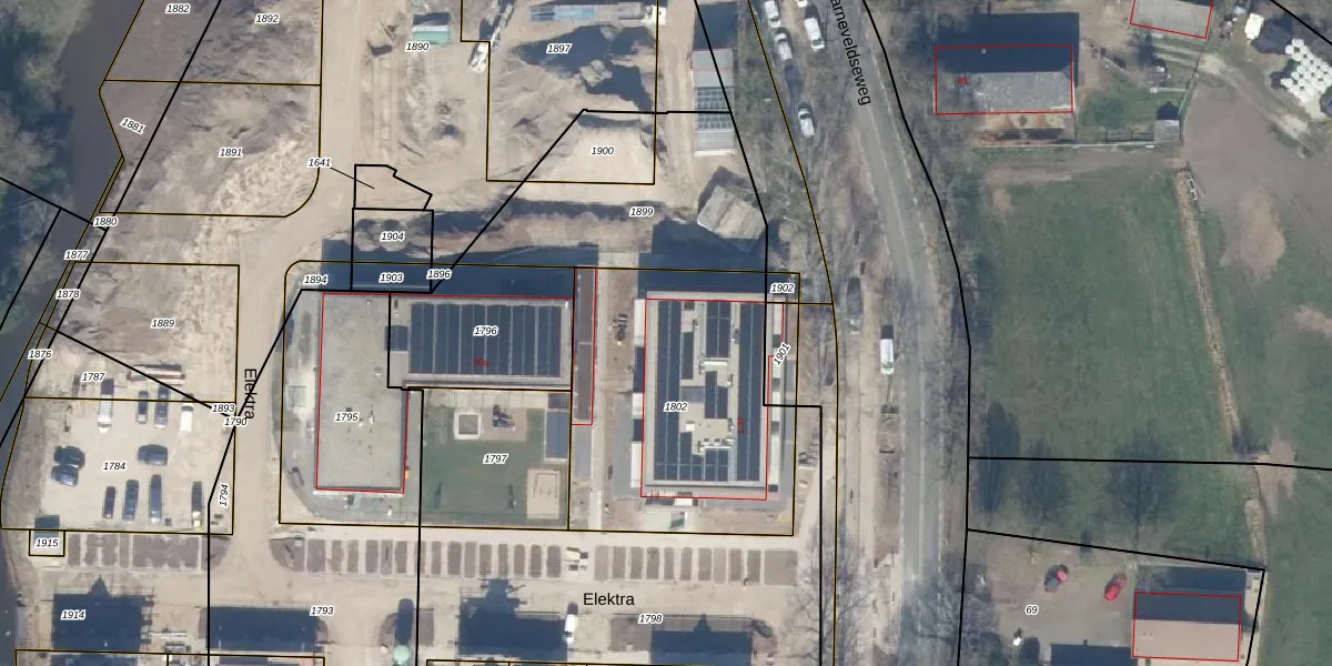 Het perceel waarop Elektra 9 staat heeft een oppervlakte van 1234 m². Dit is een zeer groot perceel. De perceeloppervlakte wordt geregistreerd door het Kadaster. Gedetailleerde informatie over de maten van dit perceel kunt u vinden in het rapport Kadastrale kaart met maatvoering van Elektra 9.