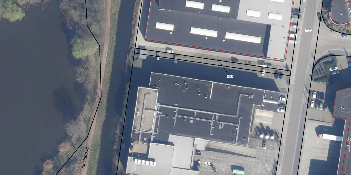 Het adres is gelegen op perceel 1628 in de sectie A en de kadastrale gemeente Nijkerk Gelderland. De kadastrale aanduiding is aldus NKK01-A-1628. Het perceel is met 6560 m² relatief groot. Het gemiddelde ligt in de kadastrale gemeente Nijkerk Gelderland op 3325,56 m². De grootste perceeloppervlakte in de kadastrale gemeente is 56,3 ha. De kleinste oppervlakte bedraagt 0 m². Op het perceel liggen in totaal 18 adressen. In de Basisregistratie Kadaster (BRK) werden de grenzen van het perceel geregistreerd op 13-12-2002.