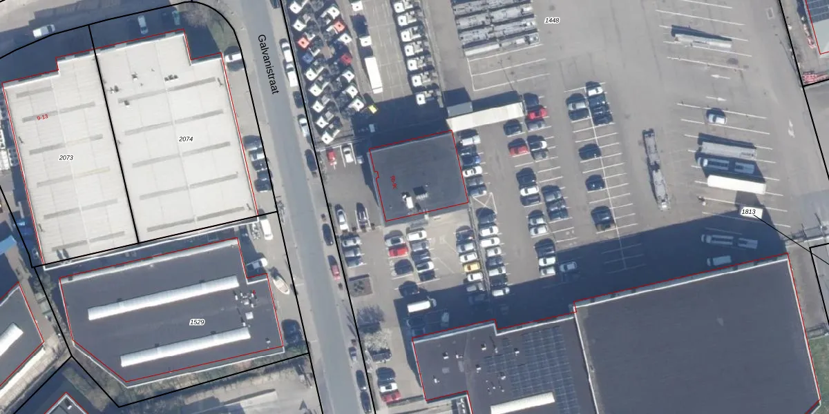 Het perceel waarop Galvanistraat 9-b staat heeft een oppervlakte van 3,0 ha. Dit is een zeer groot perceel. De perceeloppervlakte wordt geregistreerd door het Kadaster. Gedetailleerde informatie over de maten van dit perceel kunt u vinden in het rapport Kadastrale kaart met maatvoering van Galvanistraat 9-b.