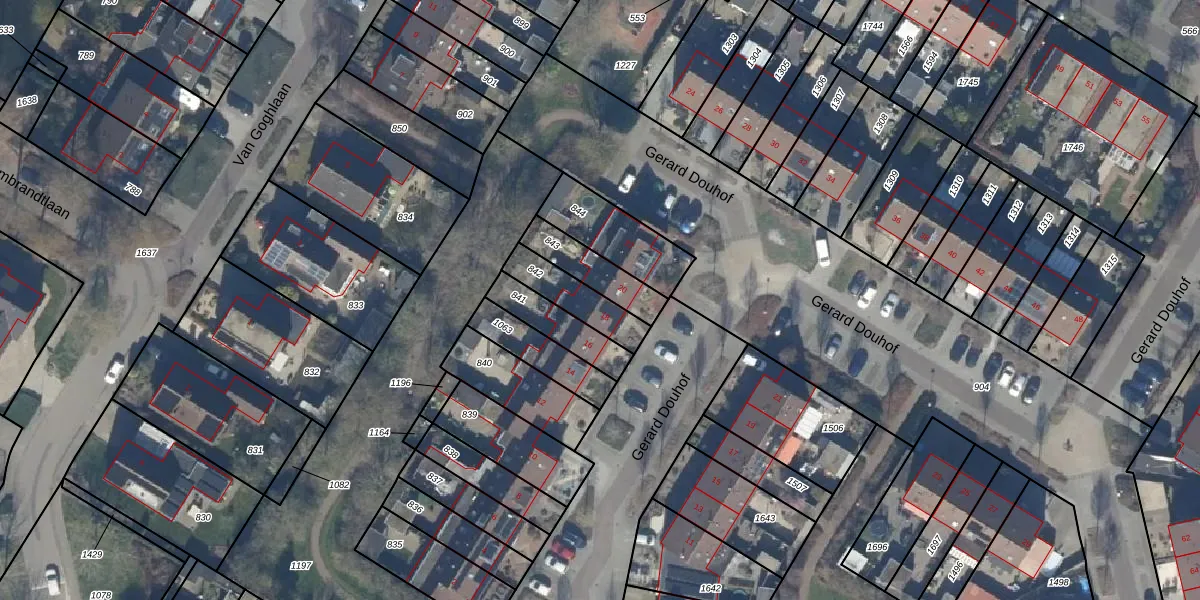 Het perceel waarop Gerard Douhof 18 staat heeft een oppervlakte van 141 m². Dit is een middelgroot perceel. De perceeloppervlakte wordt geregistreerd door het Kadaster. Gedetailleerde informatie over de maten van dit perceel kunt u vinden in het rapport Kadastrale kaart met maatvoering van Gerard Douhof 18.