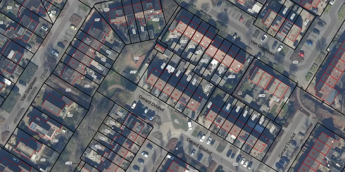 Het perceel waarop Gerard Douhof 28 staat heeft een oppervlakte van 149 m². Dit is een middelgroot perceel. De perceeloppervlakte wordt geregistreerd door het Kadaster. Gedetailleerde informatie over de maten van dit perceel kunt u vinden in het rapport Kadastrale kaart met maatvoering van Gerard Douhof 28.