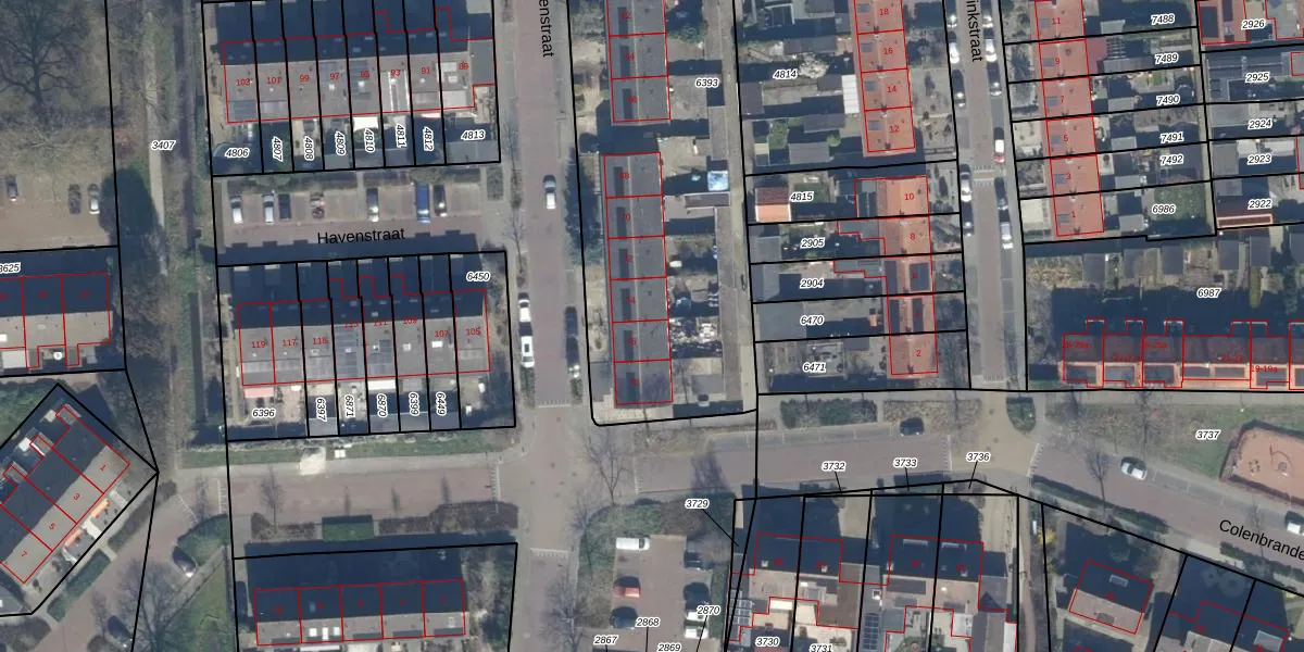 Het perceel waarop Havenstraat 76 staat heeft een oppervlakte van 2185 m². Dit is een zeer groot perceel. De perceeloppervlakte wordt geregistreerd door het Kadaster. Gedetailleerde informatie over de maten van dit perceel kunt u vinden in het rapport Kadastrale kaart met maatvoering van Havenstraat 76.