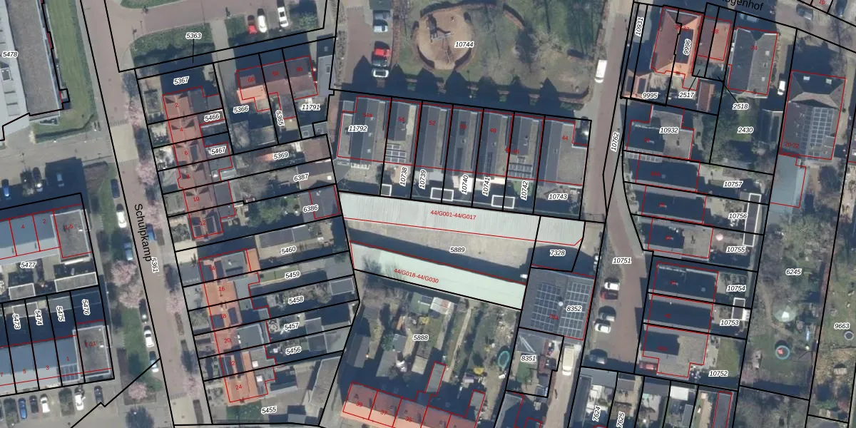 Het perceel waarop Hogenhof 44-G012 staat heeft een oppervlakte van 885 m². Dit is een groot perceel. De perceeloppervlakte wordt geregistreerd door het Kadaster. Gedetailleerde informatie over de maten van dit perceel kunt u vinden in het rapport Kadastrale kaart met maatvoering van Hogenhof 44-G012.