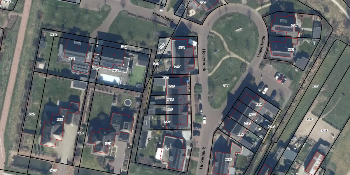 Holkerbeek 10 is gelegen op kadastraal perceel NKK01H7559. Deze kadastrale aanduiding is uniek en wordt gebruikt door het Kadaster om eigendomsrechten en andere zakelijke rechten vast te leggen. Het perceel maakt onderdeel uit van de kadastrale gemeente Nijkerk Gelderland.