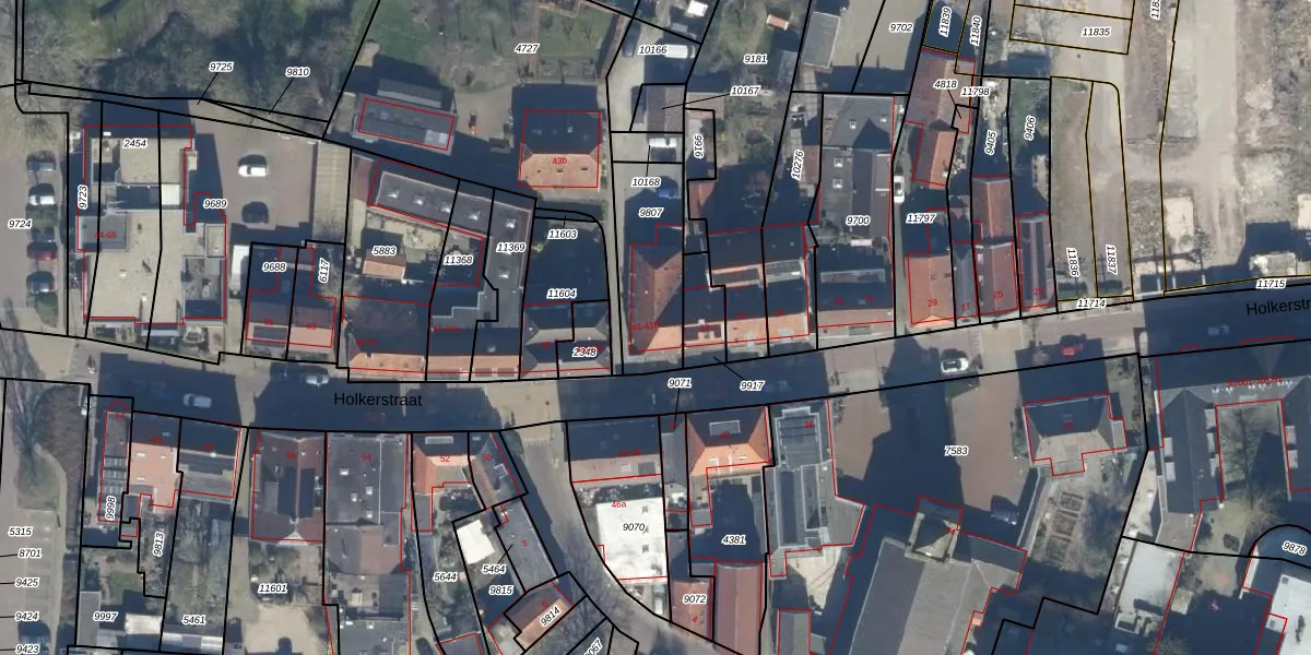 Holkerstraat 41 is gelegen op kadastraal perceel NKK01B9807. Deze kadastrale aanduiding is uniek en wordt gebruikt door het Kadaster om eigendomsrechten en andere zakelijke rechten vast te leggen. Het perceel maakt onderdeel uit van de kadastrale gemeente Nijkerk Gelderland.