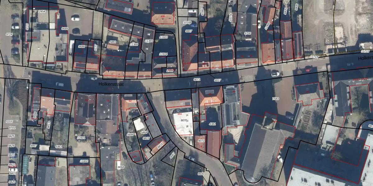 Holkerstraat 46 is gelegen op kadastraal perceel NKK01B9070. Deze kadastrale aanduiding is uniek en wordt gebruikt door het Kadaster om eigendomsrechten en andere zakelijke rechten vast te leggen. Het perceel maakt onderdeel uit van de kadastrale gemeente Nijkerk Gelderland.
