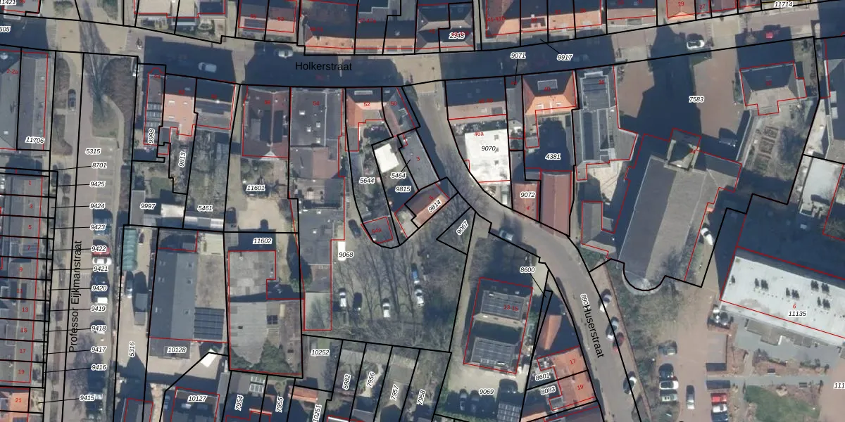 Gebruik de zoekbalk of klik op een perceel voor informatie over de adressen binnen dit perceel.