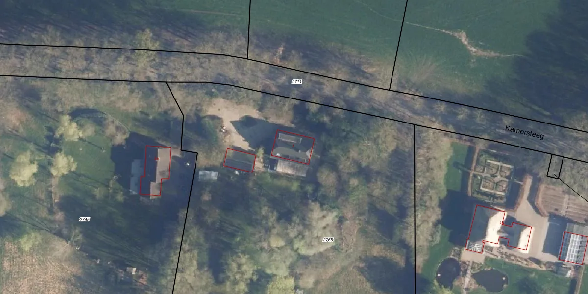 Het perceel waarop Kamersteeg 1 staat heeft een oppervlakte van 6855 m². Dit is een zeer groot perceel. De perceeloppervlakte wordt geregistreerd door het Kadaster. Gedetailleerde informatie over de maten van dit perceel kunt u vinden in het rapport Kadastrale kaart met maatvoering van Kamersteeg 1.