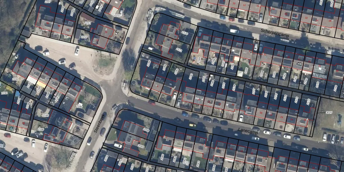 Gebruik de zoekbalk of klik op een perceel voor informatie over de adressen binnen dit perceel.