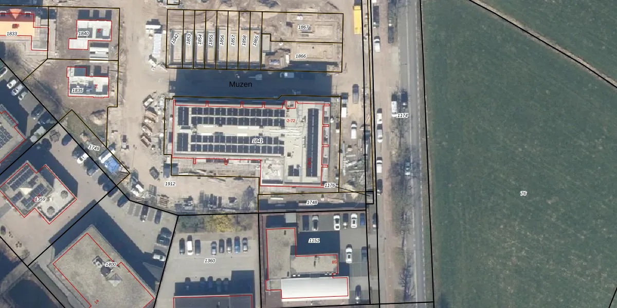 Het perceel waarop Muzen 26 staat heeft een oppervlakte van 1585 m². Dit is een zeer groot perceel. De perceeloppervlakte wordt geregistreerd door het Kadaster. Gedetailleerde informatie over de maten van dit perceel kunt u vinden in het rapport Kadastrale kaart met maatvoering van Muzen 26.