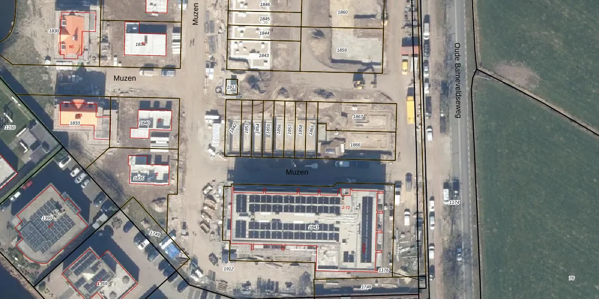 Het perceel waarop Muzen 3 staat heeft een oppervlakte van 68 m². Dit is een klein perceel. De perceeloppervlakte wordt geregistreerd door het Kadaster. Gedetailleerde informatie over de maten van dit perceel kunt u vinden in het rapport Kadastrale kaart met maatvoering van Muzen 3.