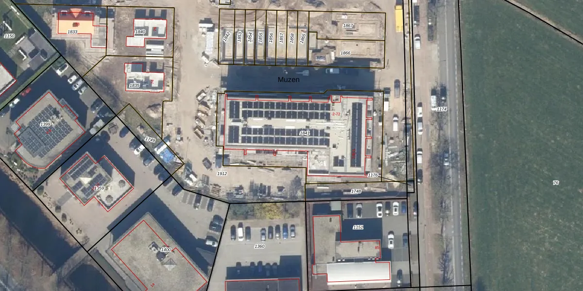 Het perceel waarop Muzen 34 staat heeft een oppervlakte van 1585 m². Dit is een zeer groot perceel. De perceeloppervlakte wordt geregistreerd door het Kadaster. Gedetailleerde informatie over de maten van dit perceel kunt u vinden in het rapport Kadastrale kaart met maatvoering van Muzen 34.
