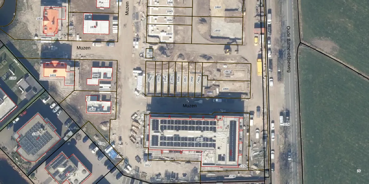 Het perceel waarop Muzen 5 staat heeft een oppervlakte van 68 m². Dit is een klein perceel. De perceeloppervlakte wordt geregistreerd door het Kadaster. Gedetailleerde informatie over de maten van dit perceel kunt u vinden in het rapport Kadastrale kaart met maatvoering van Muzen 5.