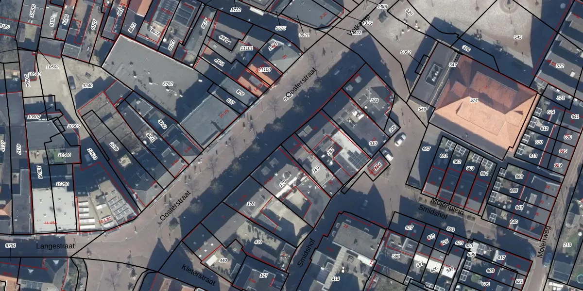 Oosterstraat 13 is gelegen op kadastraal perceel NKK01L180. Deze kadastrale aanduiding is uniek en wordt gebruikt door het Kadaster om eigendomsrechten en andere zakelijke rechten vast te leggen. Het perceel maakt onderdeel uit van de kadastrale gemeente Nijkerk Gelderland.