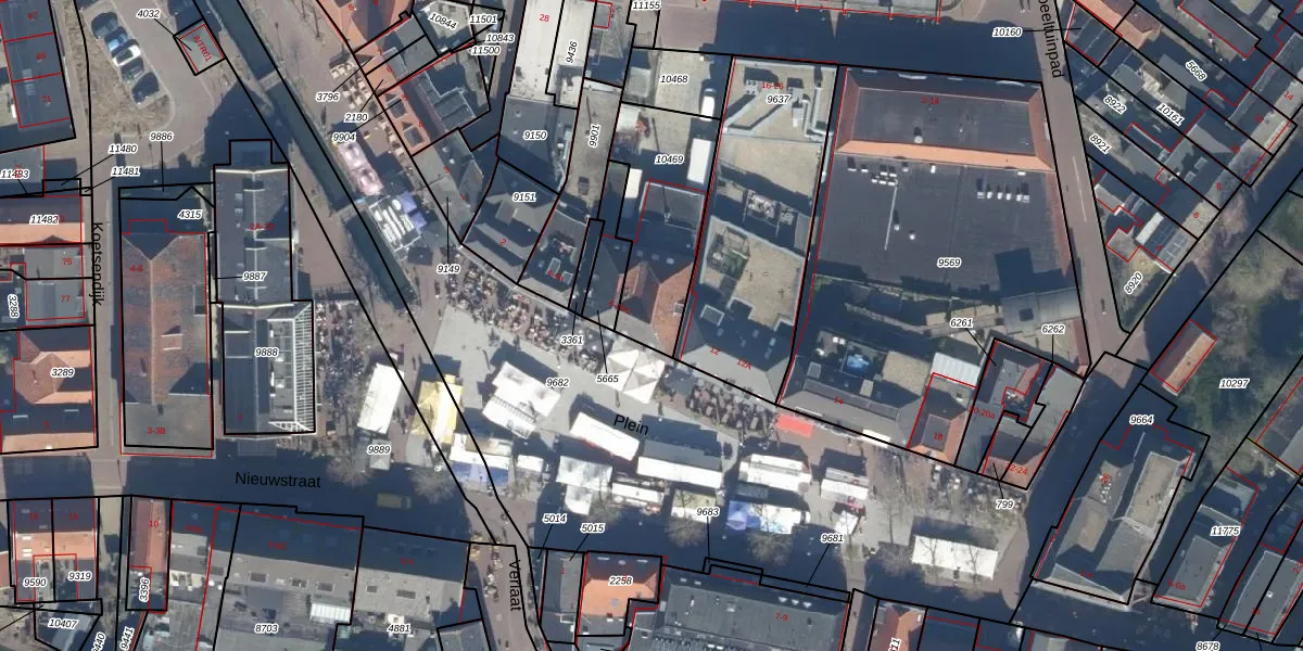 Het perceel waarop Plein 8 staat heeft een oppervlakte van 429 m². Dit is een groot perceel. De perceeloppervlakte wordt geregistreerd door het Kadaster. Gedetailleerde informatie over de maten van dit perceel kunt u vinden in het rapport Kadastrale kaart met maatvoering van Plein 8.