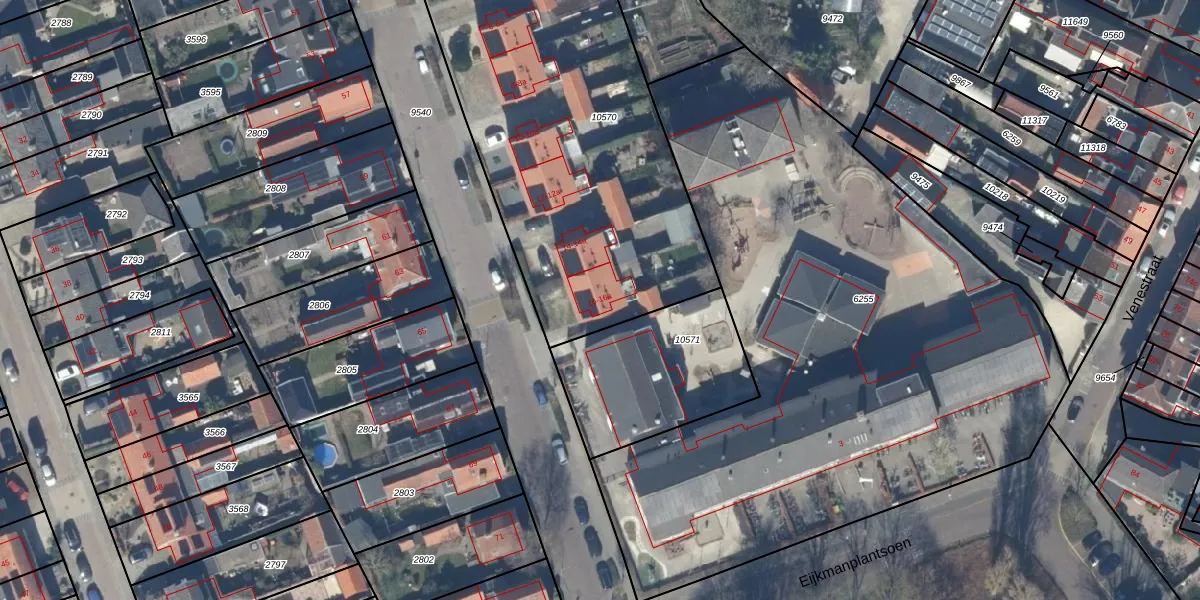 Het perceel waarop Professor Eijkmanstraat 16-a staat heeft een oppervlakte van 2480 m². Dit is een zeer groot perceel. De perceeloppervlakte wordt geregistreerd door het Kadaster. Gedetailleerde informatie over de maten van dit perceel kunt u vinden in het rapport Kadastrale kaart met maatvoering van Professor Eijkmanstraat 16-a.