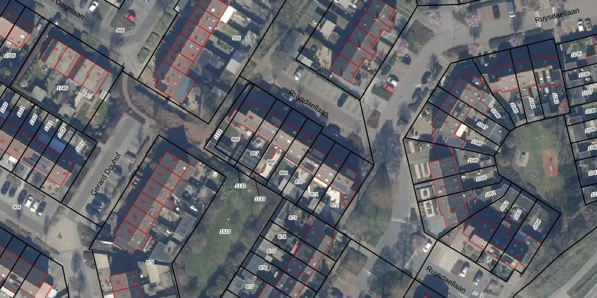 Het perceel waarop Ruysdaellaan 69 staat heeft een oppervlakte van 162 m². Dit is een middelgroot perceel. De perceeloppervlakte wordt geregistreerd door het Kadaster. Gedetailleerde informatie over de maten van dit perceel kunt u vinden in het rapport Kadastrale kaart met maatvoering van Ruysdaellaan 69.