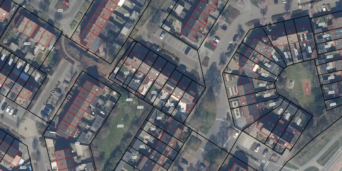 Het perceel waarop Ruysdaellaan 71 staat heeft een oppervlakte van 151 m². Dit is een middelgroot perceel. De perceeloppervlakte wordt geregistreerd door het Kadaster. Gedetailleerde informatie over de maten van dit perceel kunt u vinden in het rapport Kadastrale kaart met maatvoering van Ruysdaellaan 71.