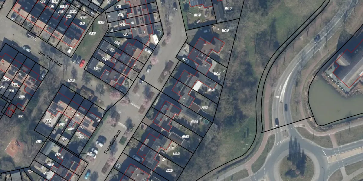 Het perceel waarop Ruysdaellaan 8 staat heeft een oppervlakte van 323 m². Dit is een groot perceel. De perceeloppervlakte wordt geregistreerd door het Kadaster. Gedetailleerde informatie over de maten van dit perceel kunt u vinden in het rapport Kadastrale kaart met maatvoering van Ruysdaellaan 8.