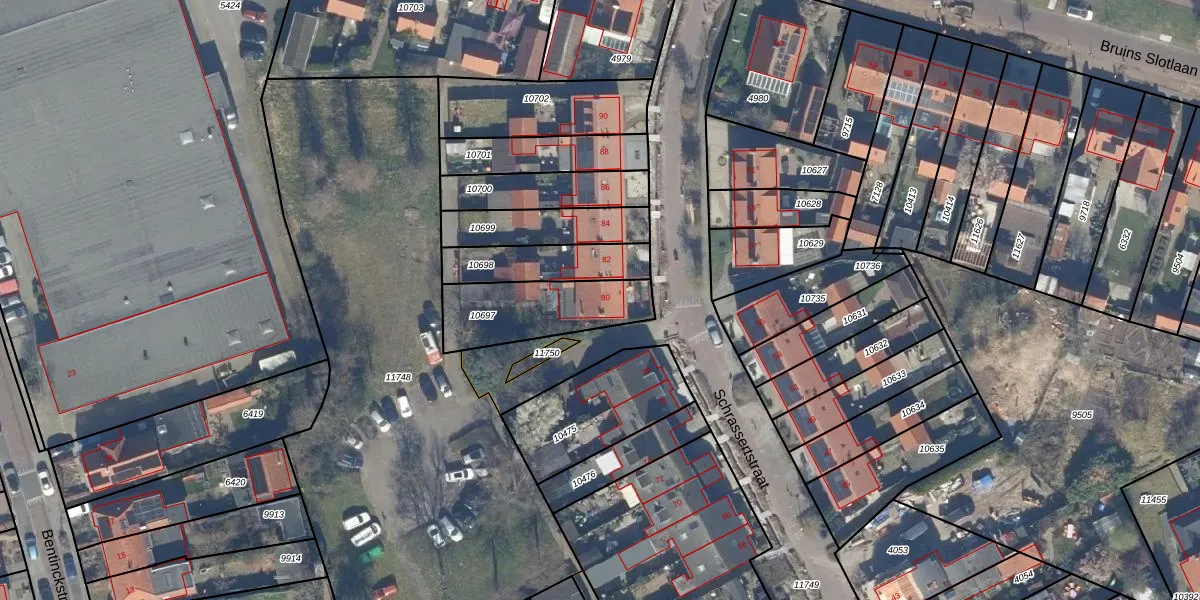 Het perceel waarop Schrassertstraat 80 staat heeft een oppervlakte van 320 m². Dit is een groot perceel. De perceeloppervlakte wordt geregistreerd door het Kadaster. Gedetailleerde informatie over de maten van dit perceel kunt u vinden in het rapport Kadastrale kaart met maatvoering van Schrassertstraat 80.