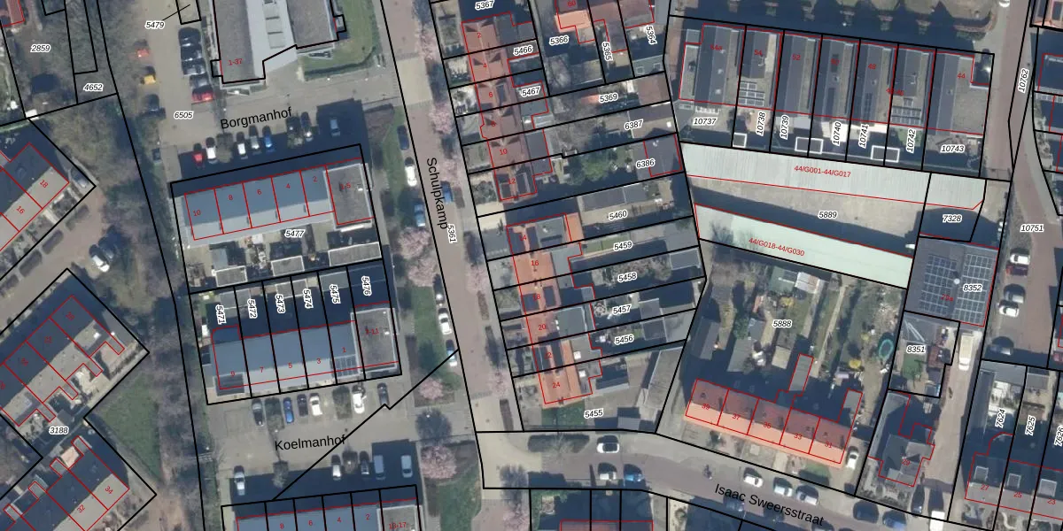 Gebruik de zoekbalk of klik op een perceel voor informatie over de adressen binnen dit perceel.