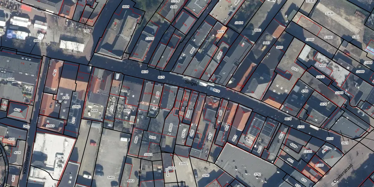 Het perceel waarop Singel 21 staat heeft een oppervlakte van 123 m². Dit is een middelgroot perceel. De perceeloppervlakte wordt geregistreerd door het Kadaster. Gedetailleerde informatie over de maten van dit perceel kunt u vinden in het rapport Kadastrale kaart met maatvoering van Singel 21.