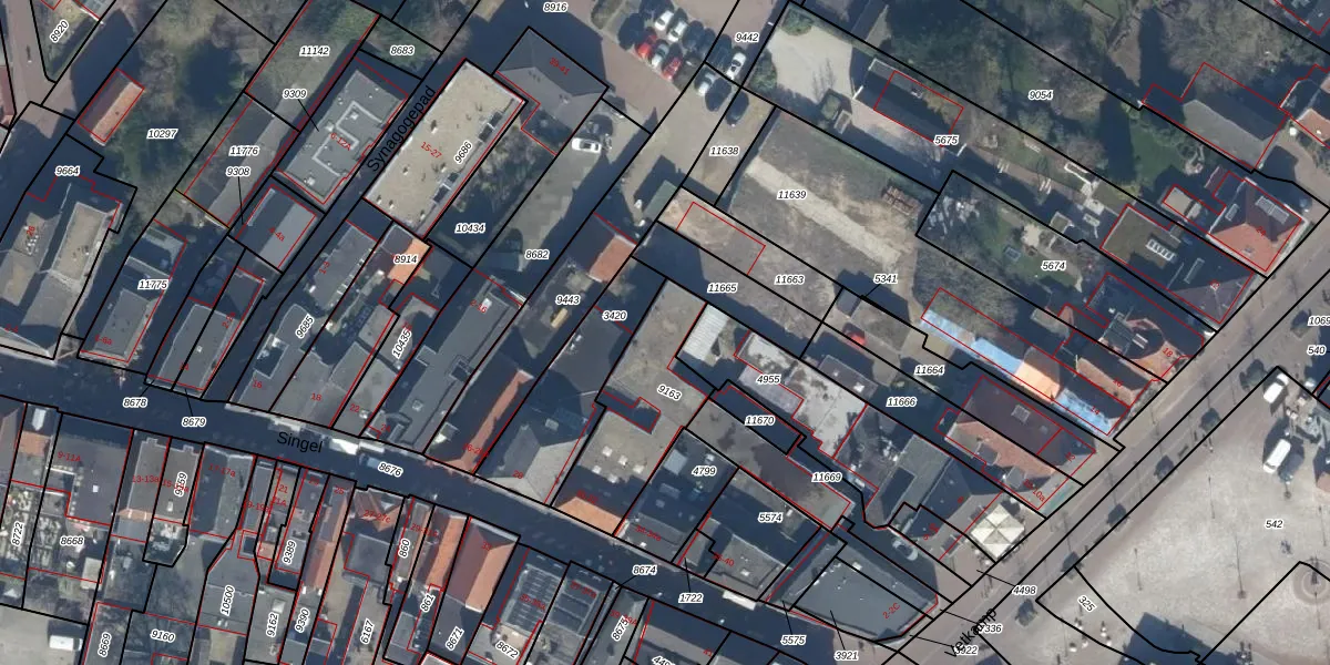 Het perceel waarop Singel 30-e staat heeft een oppervlakte van 380 m². Dit is een groot perceel. De perceeloppervlakte wordt geregistreerd door het Kadaster. Gedetailleerde informatie over de maten van dit perceel kunt u vinden in het rapport Kadastrale kaart met maatvoering van Singel 30-e.