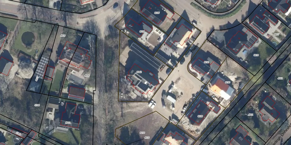 Thielen 4 is gelegen op kadastraal perceel NKK01H8342. Deze kadastrale aanduiding is uniek en wordt gebruikt door het Kadaster om eigendomsrechten en andere zakelijke rechten vast te leggen. Het perceel maakt onderdeel uit van de kadastrale gemeente Nijkerk Gelderland.