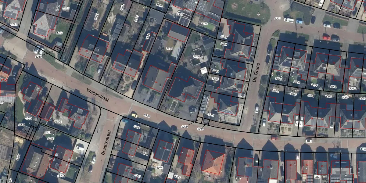 Wallerstraat 36 is gelegen op kadastraal perceel NKK01C3280. Deze kadastrale aanduiding is uniek en wordt gebruikt door het Kadaster om eigendomsrechten en andere zakelijke rechten vast te leggen. Het perceel maakt onderdeel uit van de kadastrale gemeente Nijkerk Gelderland.