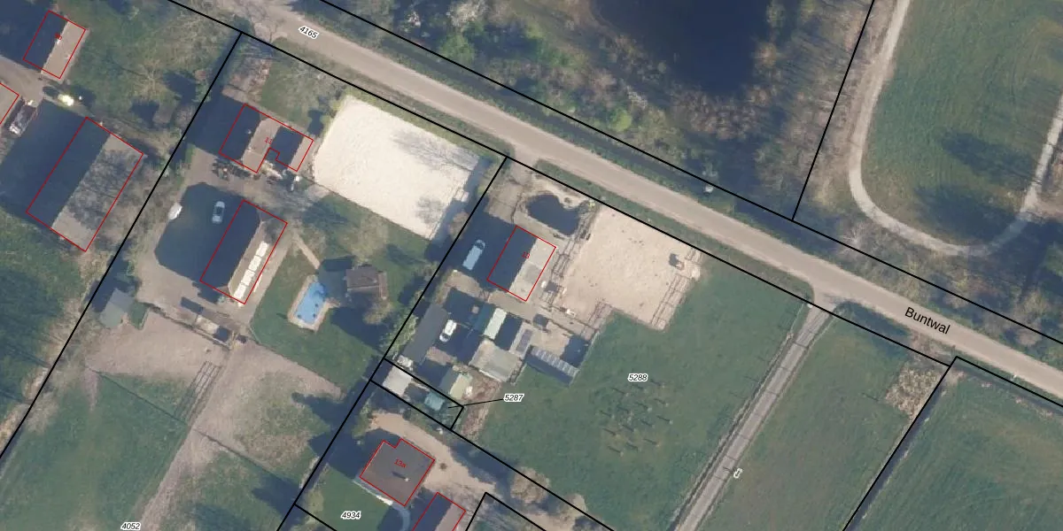 Het perceel waarop Buntwal 13 staat heeft een oppervlakte van 8725 m². Dit is een zeer groot perceel. De perceeloppervlakte wordt geregistreerd door het Kadaster. Gedetailleerde informatie over de maten van dit perceel kunt u vinden in het rapport Kadastrale kaart met maatvoering van Buntwal 13.