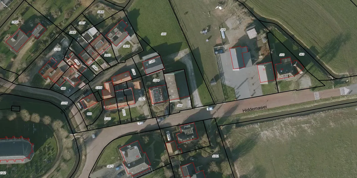 Hiddemawei 9 is gelegen op kadastraal perceel NLD01K166. Deze kadastrale aanduiding is uniek en wordt gebruikt door het Kadaster om eigendomsrechten en andere zakelijke rechten vast te leggen. Het perceel maakt onderdeel uit van de kadastrale gemeente Nieuwland Friesland.