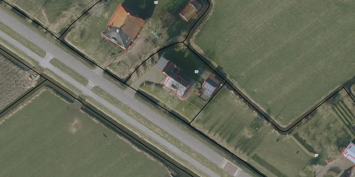 Het adres ligt op het perceel NLD01-K-76, dat zich in de kadastrale gemeente Nieuwland Friesland bevindt. Het perceel is 1440 m² groot. Dat is kleiner dan de gemiddelde perceeloppervlakte in Nieuwland Friesland, dat op 1,4 ha ligt. Het kleinste perceel in de kadastrale gemeente is 0 m² groot. De grootste perceeloppervlakte is 42,1 ha. Dit is het enige adres dat aanwezig is op het perceel. De huidige grenzen van het perceel zijn digitaal in de Basisregistratie Kadaster (BRK) geregistreerd op 23-01-2009.