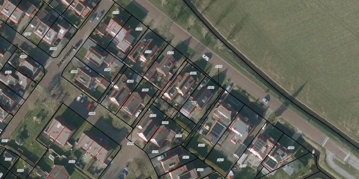 Het adres ligt op het perceel NLD01-A-1661, dat zich in de kadastrale gemeente Nieuwland Friesland bevindt. De gemiddelde perceelgrootte in Nieuwland Friesland is 1,4 ha. Dit perceel is kleiner: de perceeloppervlakte bedraagt 312 m². Het kleinste perceel in de kadastrale gemeente is 0 m² groot. De grootste perceeloppervlakte is 42,1 ha. Er zijn geen andere adressen aanwezig op het perceel. De huidige grenzen van het perceel zijn digitaal in de Basisregistratie Kadaster (BRK) geregistreerd op 15-01-1998.