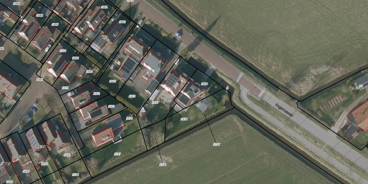 Ingenawei 34 is gelegen op kadastraal perceel NLD01A1609. Deze kadastrale aanduiding is uniek en wordt gebruikt door het Kadaster om eigendomsrechten en andere zakelijke rechten vast te leggen. Het perceel maakt onderdeel uit van de kadastrale gemeente Nieuwland Friesland.