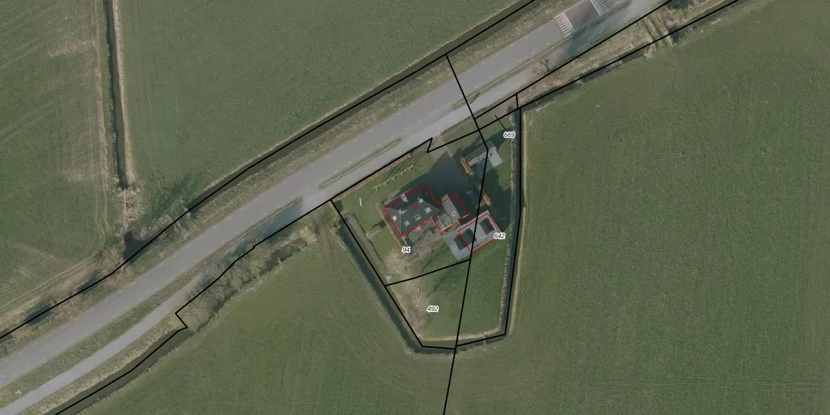Het adres ligt op het perceel NLD01-K-94, dat zich in de kadastrale gemeente Nieuwland Friesland bevindt. De gemiddelde perceelgrootte in Nieuwland Friesland is 1,4 ha. Dit perceel is kleiner: de perceeloppervlakte bedraagt 910 m². De grootste perceeloppervlakte in de kadastrale gemeente is 42,1 ha. De kleinste oppervlakte bedraagt 0 m². Op het perceel bevinden zich geen andere adressen. In de Basisregistratie Kadaster (BRK) werden de grenzen van het perceel geregistreerd op 23-01-2009.
