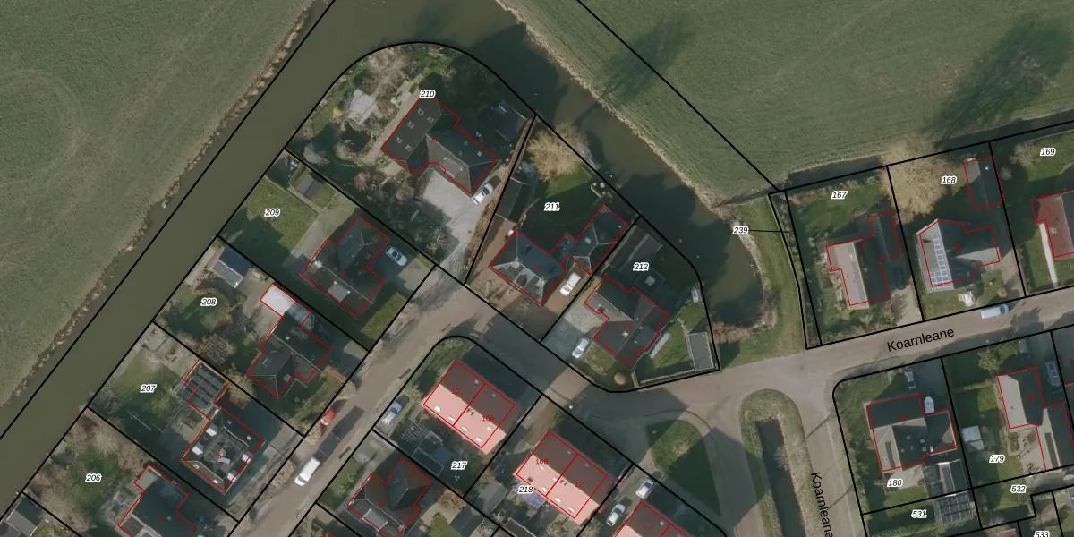 Koarnleane 13 is gelegen op kadastraal perceel NLD01K211. Deze kadastrale aanduiding is uniek en wordt gebruikt door het Kadaster om eigendomsrechten en andere zakelijke rechten vast te leggen. Het perceel maakt onderdeel uit van de kadastrale gemeente Nieuwland Friesland.