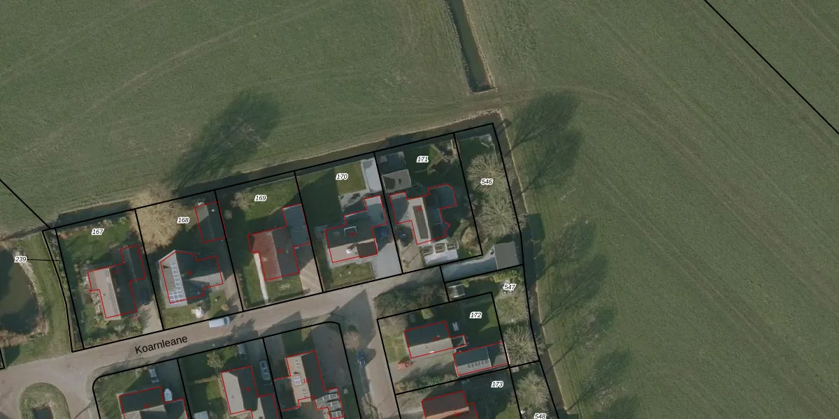 Koarnleane 25 is gelegen op kadastraal perceel NLD01K171. Deze kadastrale aanduiding is uniek en wordt gebruikt door het Kadaster om eigendomsrechten en andere zakelijke rechten vast te leggen. Het perceel maakt onderdeel uit van de kadastrale gemeente Nieuwland Friesland.